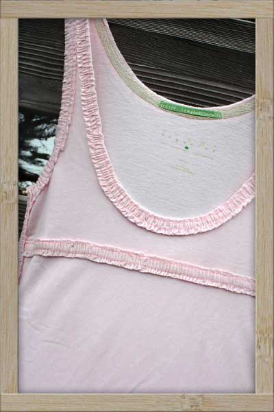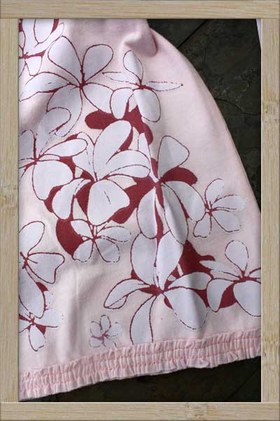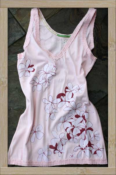 Women’s Plumeria Tank $52Roll over image to magnifyDetails abound in this extra length, fitted sleeveless top. A dreamy trail of plumeria wraps the body of this ruched seamed casual classic. Available in Soft Pink in S, M, and L. More Info/Order |