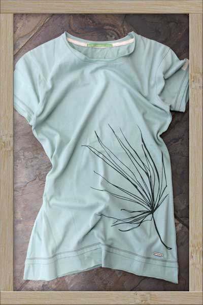 Women’s Palm Frond Tee Shirt $52Roll over image to magnifyA simple, stark hint at tropical paradise, our Palm Frond Tee featues a clean, earthy graphic on our fit-to-flatter basic tee. Available in Sea Green in S, M, and L. More Info/Order |